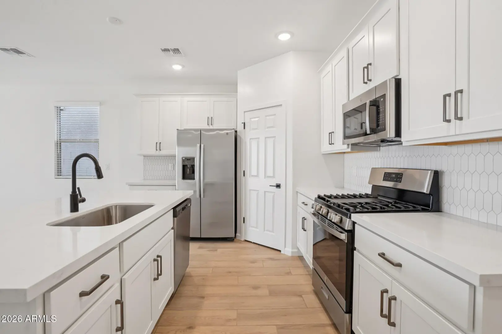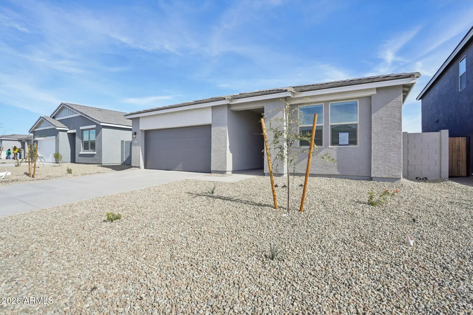 ''Have you been searching for a home that truly has it all? The Sage Floor Plan is a stunning 2,150-square-foot design that blends modern style with thoughtful functionality. Featuring a sleek modern-desert exterior and a spacious three-car garage, this home offers four bedrooms, a flexible den, and three beautifully appointed bathrooms. Step inside to an inviting open-concept kitchen showcasing the elevated Designer Harmony Collection. You'll find 42-inch shaker-style white cabinets accented with gunmetal hardware, Biancone quartz countertops, and a gorgeous herringbone tile backsplash that adds texture and sophistication. Throughout the home, the black matte door hardware and bathroom fixtures create a cohesive, contemporary look. 8x 36 honey tile throughout main areas and