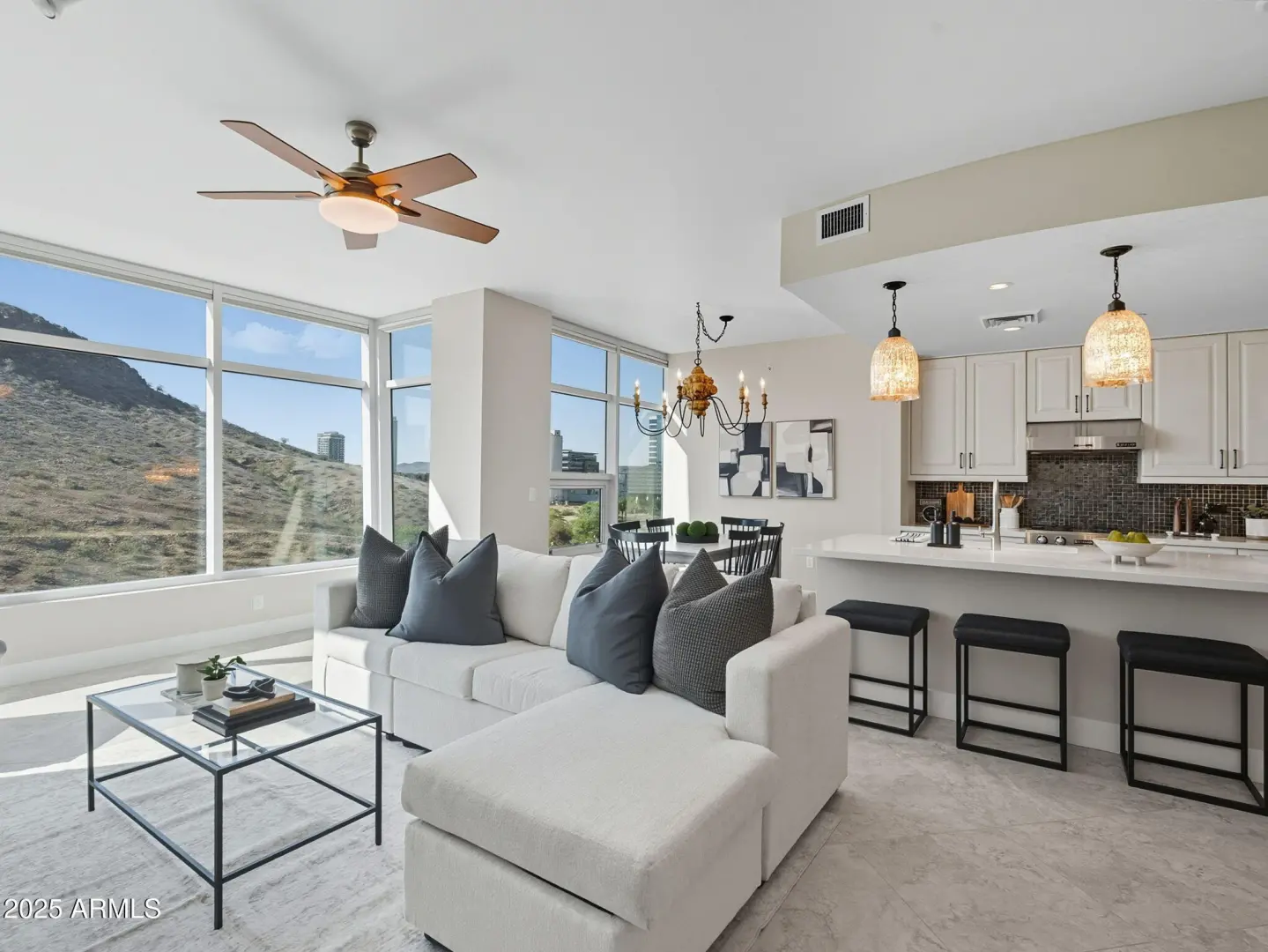 SELLER OFFERING ONE FREE YEAR OF HOA FEES. Beautiful 2 bed / 2 bath condo in a full-amenity building right on Tempe Town Lake. Enjoy breathtaking mountain and water views from this ideal lock-and-leave residence, just minutes from ASU, Sun Devil Stadium, Mill Avenue, shopping, dining, and entertainment. Open-concept floor plan with spacious living areas, modern/high-end finishes, and large windows with electric shades that bring in natural light. Perfect for year-round living or a seasonal getaway. Building amenities include 24/7 security, resort-style pool and spa, fitness center, clubhouse, and more. Don't miss this rare opportunity to live in Tempe's most sought-after waterfront community!