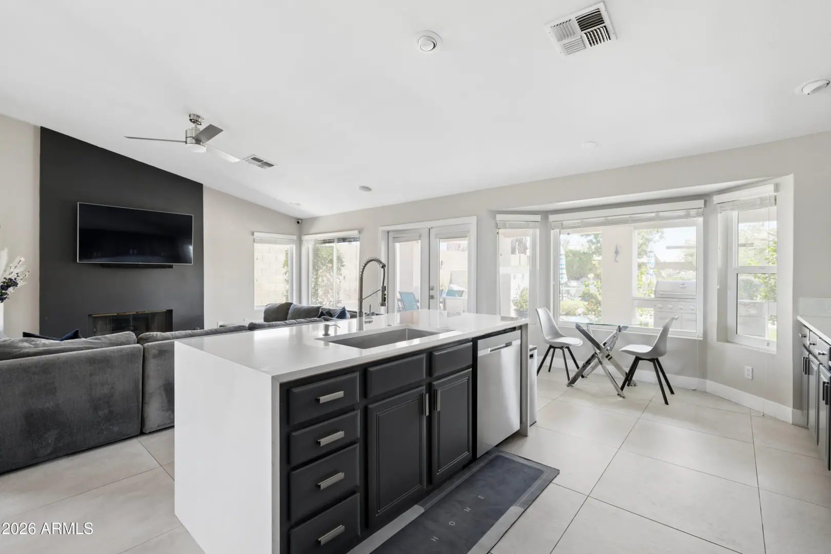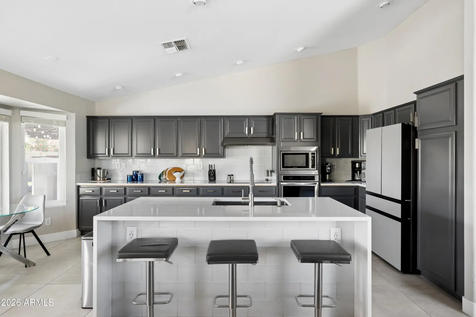 Welcome to Crystal Canyon, tucked along the foothills of South Mountain. Recently refreshed and tastefully redesigned, this move-in ready home offers a functional split floor plan with the primary suite privately positioned on its own wing, while secondary bedrooms and the guest bathroom are set on the opposite side. Multiple living areas create flexibility for both everyday living and entertaining. At the heart of the home, the remodeled kitchen features an updated color palette, quartz countertops, a charming breakfast nook, and an eat-in island that opens seamlessly to the main living space creating a natural hub for gathering.