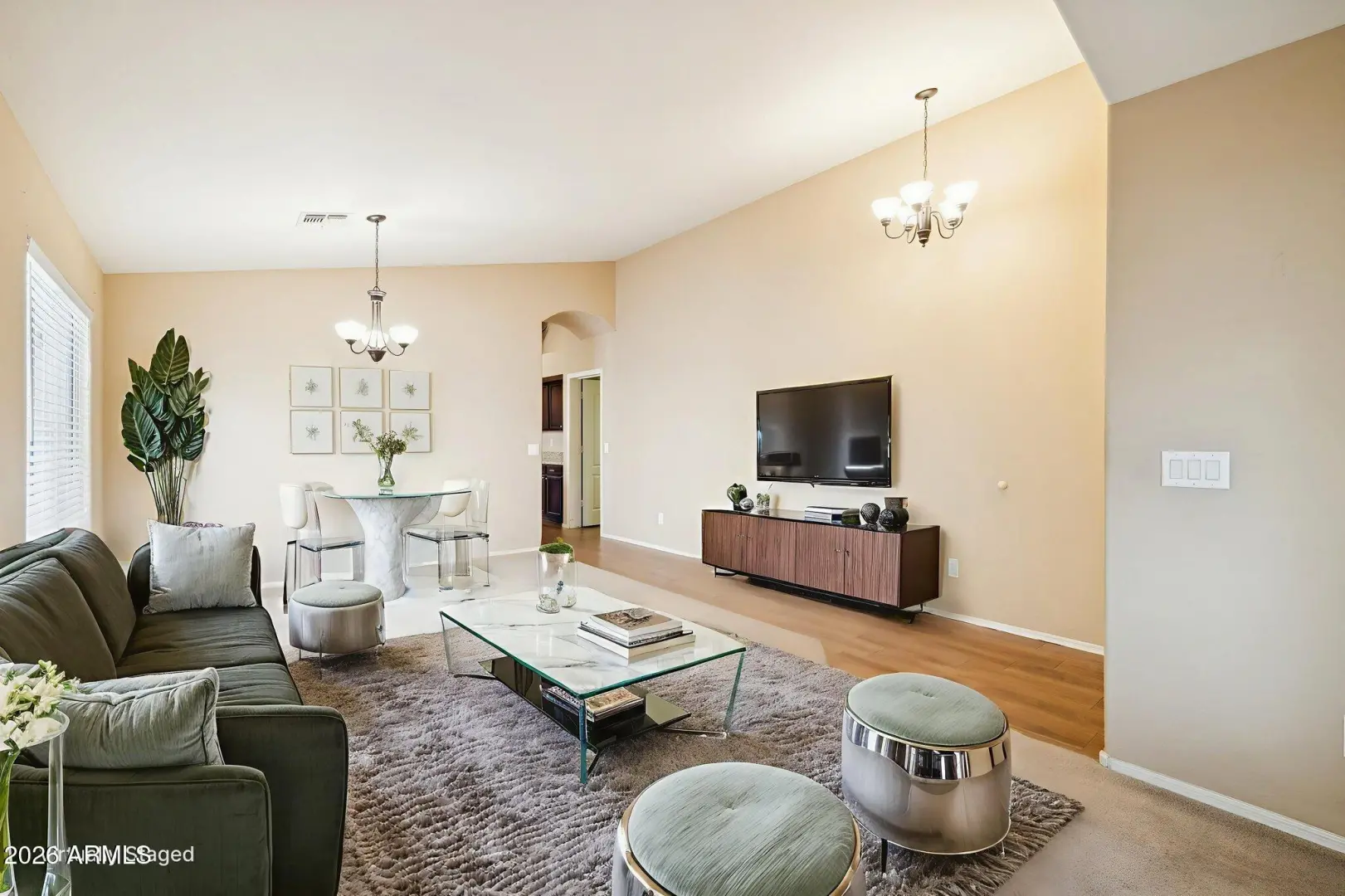 Nestled in the prestigious Rancho El Dorado golf course community in Maricopa, 22085 N Van Loo Dr delivers resort-style living on a stunning golf course lot with lush fairways views. This master planned haven boasts an 18-hole championship course, walking paths, parks, pools, tennis, and clubhouses—perfect for active families, golfers, and retirees. Top rated Maricopa schools and Maricopa Marketplace ensure effortless living in this appreciating 2025 hotspot. Spanning 2,135 sqft on a generous large lot, this 4 bed, 2 bath gem shines with granite countertops, a beautiful mix of plush carpet, elegant hardwood, and durable tile flooring. The expansive master suite features high ceilings, a soaking tub, separate shower, and oversized walk-in closet for ultimate relaxation.