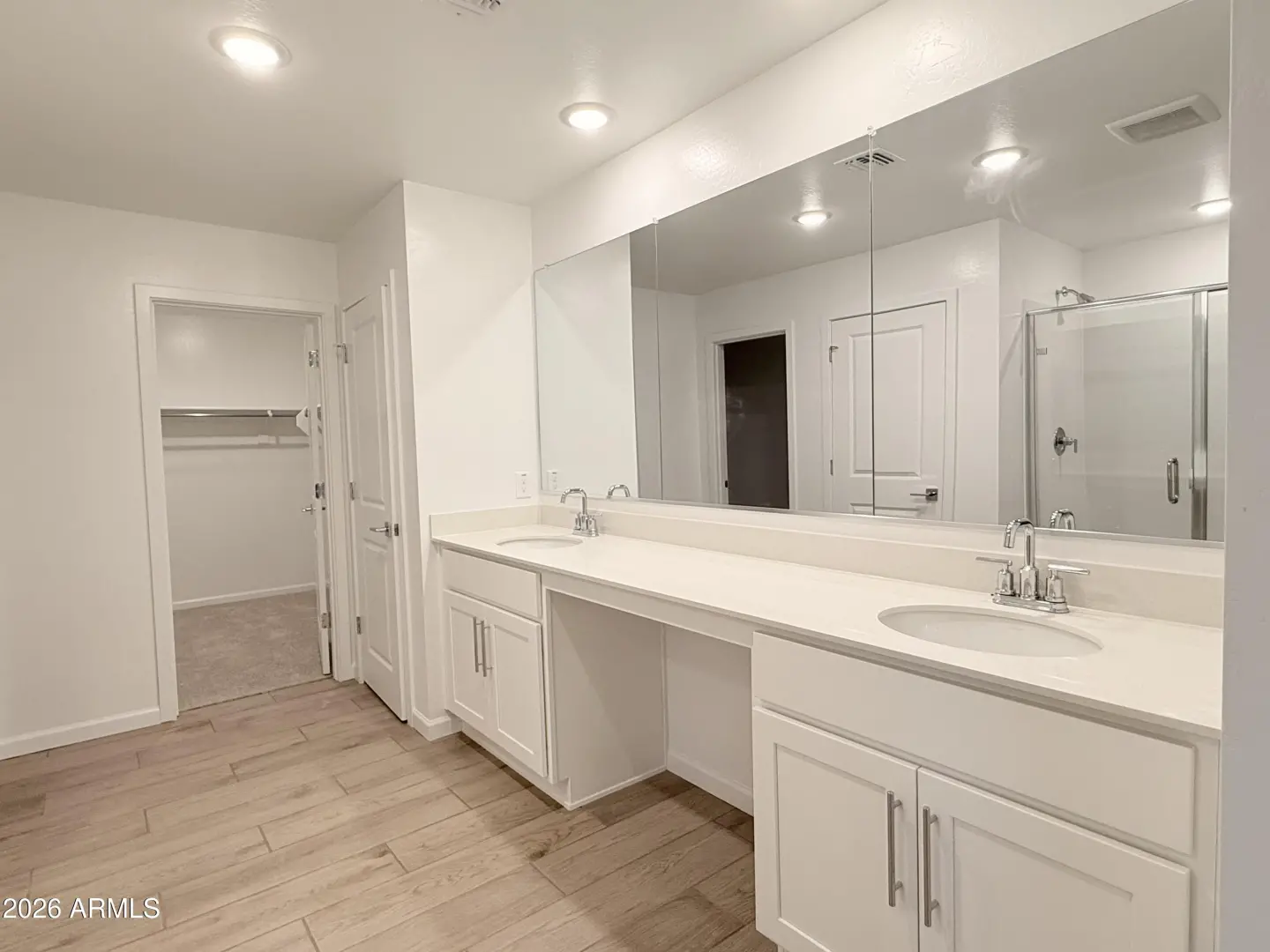 This impressive two-story home spans 2,988 square feet and boasts 5 bedrooms, 4.5 bathrooms, a spacious loft, and a 3-car tandem garage. Upon entering, you'll find a bedroom and a full bath and the great room, illuminated by a large 4-panel sliding glass door, brightens the dining nook and kitchen. As part of the Coastal Collection, this home features 42'' upper white shaker cabinets, quartz countertops, a matching backsplash, and stainless steel appliances. Additional amenities include a rough-in for a soft water loop, as well as a washer, dryer, fridge, pendant light pre-wire, and blinds throughout. Upstairs, the primary suite offers a large walk-in closet, double sinks, and a linen closet, while the generously sized laundry room is conveniently located off the large loft. Each of