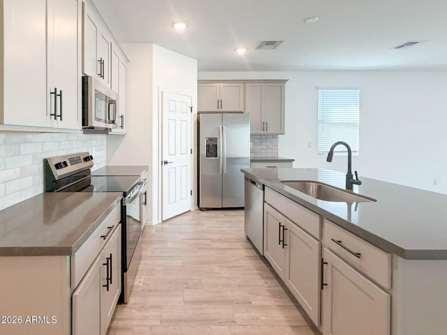 Fall in love with the Sage Floorplan, a beautifully designed home offering 2,150 square feet of modern comfort and functional living. With 4 spacious bedrooms, 3 full bathrooms, and a 3-car garage, this home perfectly blends style, convenience, and versatility for today's lifestyle. The split layout provides privacy and flow, creating ideal separation between the primary suite and secondary bedrooms. A versatile den with its own full bath serves as the perfect guest suite, home office, or multi-generational space, offering flexibility to suit your family's needs. At the heart of the home, the gourmet kitchen shines with 42'' grey shaker cabinets, elegant quartz countertops, 7x22 tile flooring, and stainless steel appliances, including a refrigerator, washer, and dryer—