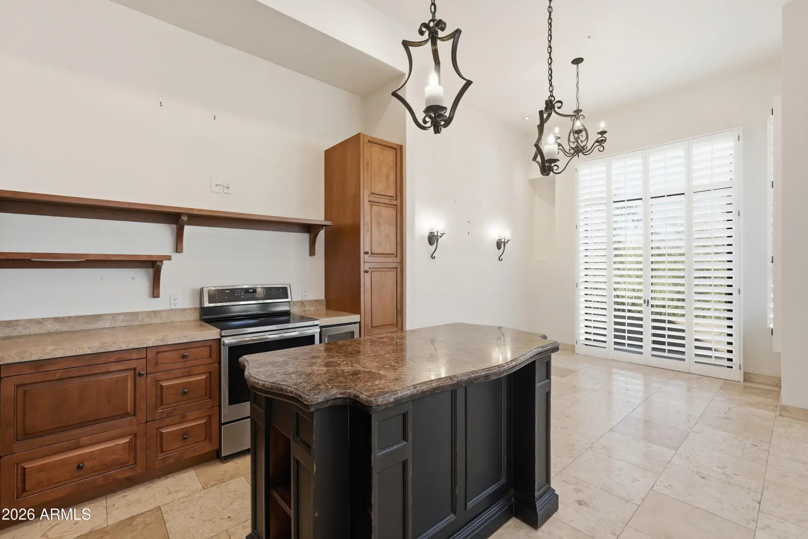 Stunning remodel with latest design elements. Your special Pied-a'-terre located in Skye Top at Troon. 2nd bedroom has been updated to function as library/office, den or Br #2. Travertine & walnut flooring. Canterra FP. Hand wrought iron chandelier & fixtures. Wood shutters. Bosch D/W. Wine chiller. Patio views to Pinnacle Peak, Steps away from the lush setting of community pool, spa, waterfall & club house. Located near pvt. Troon CC, public courses of Troon North, Grayhawk & many others. NoSco with fine dining, bistros, hiking, biking, museums & much more.