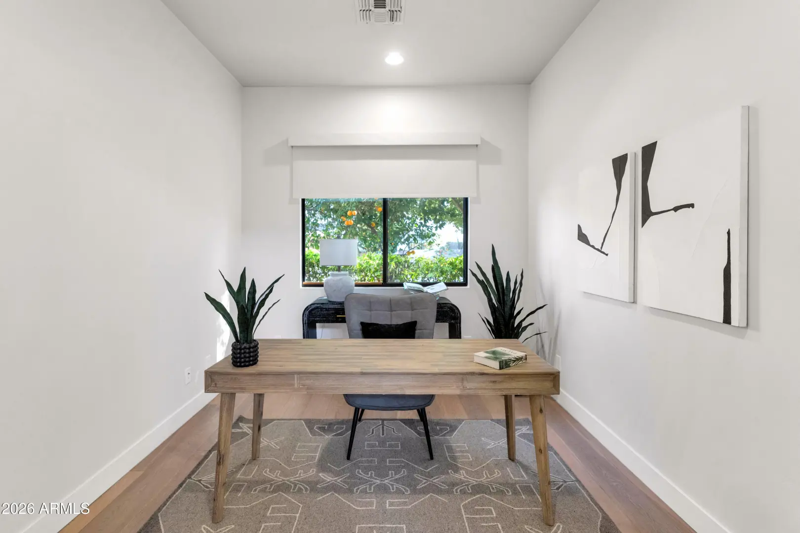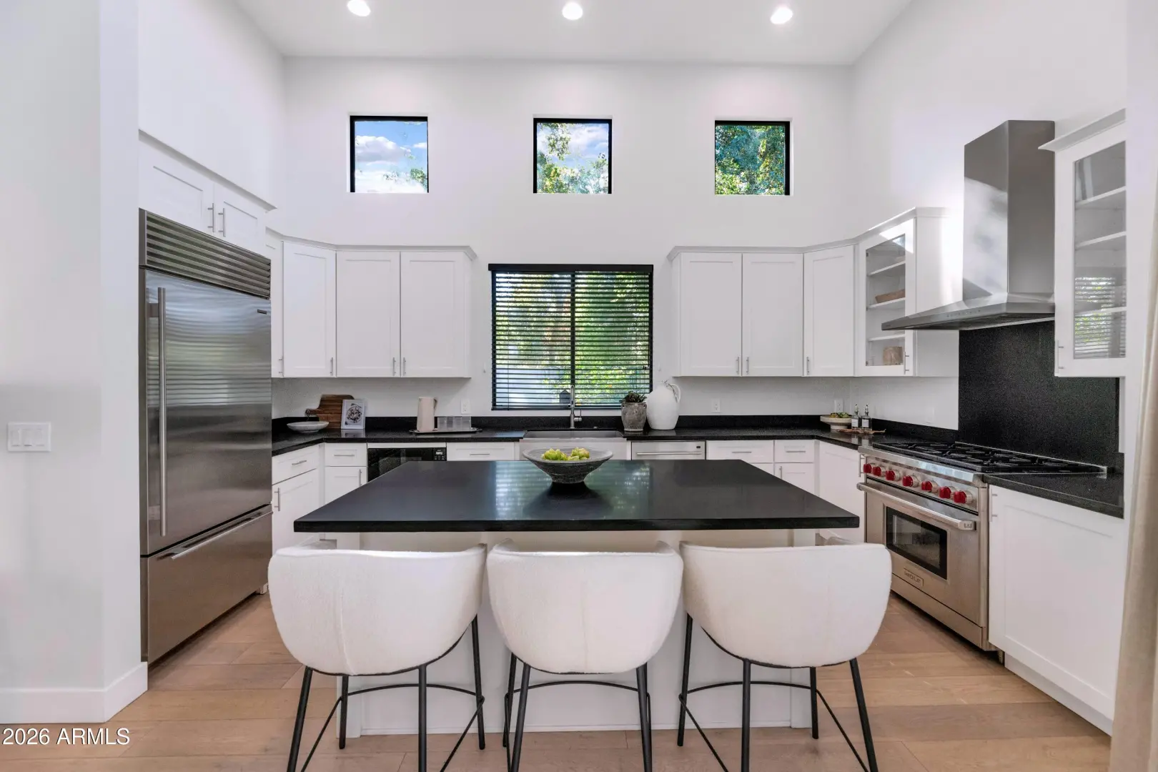 Welcome to this exquisite 2016-built luxury home in the heart of Arcadia! Nestled in the exclusive Arcadia Orchard community—an enclave of just five custom-built homes—this stunning property offers four bedrooms, an office, a spacious loft, and four bathrooms, ensuring ample space for both family and guests. The primary suite is conveniently located downstairs, featuring a resort-style bathroom with a soaking tub, walk-in shower, and an oversized walk-in closet. The open-concept design boasts soaring 20-foot ceilings, seamlessly connecting the kitchen, dining area, and living room. The chef's kitchen is a showstopper, complete with stainless steel Sub-Zero appliances, a Wolf gas range, an oversized island, and abundant cabinetry for storage. Step outside to your lush, private backyard