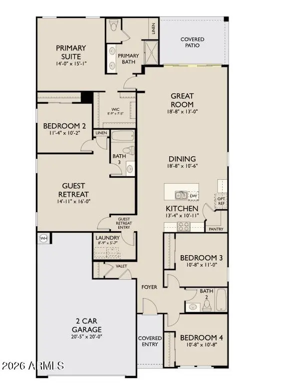 Welcome to your dream home in the vibrant Amarillo Creek community - the Sunflower! This stunning 2,218 sq. ft. home offers 4 spacious bedrooms, 3 bathrooms, and a versatile guest retreat--giving you the perfect blend of comfort, flexibility, and luxury. Inside, you'll fall in love with the bright and airy feel, specifically planned and curated by our designers. Walk through the open-concept layout, designed for both everyday living and entertaining. The great room and kitchen create a bright, welcoming heart of the home, perfect for gatherings both big and small. Honey 8 x 36 tile flooring flows throughout the main areas, while upgraded plush carpet adds comfort to the bedrooms. The designer kitchen with the ''Harmony Collection'' is the centerpiece of this home, featuring 42'' white