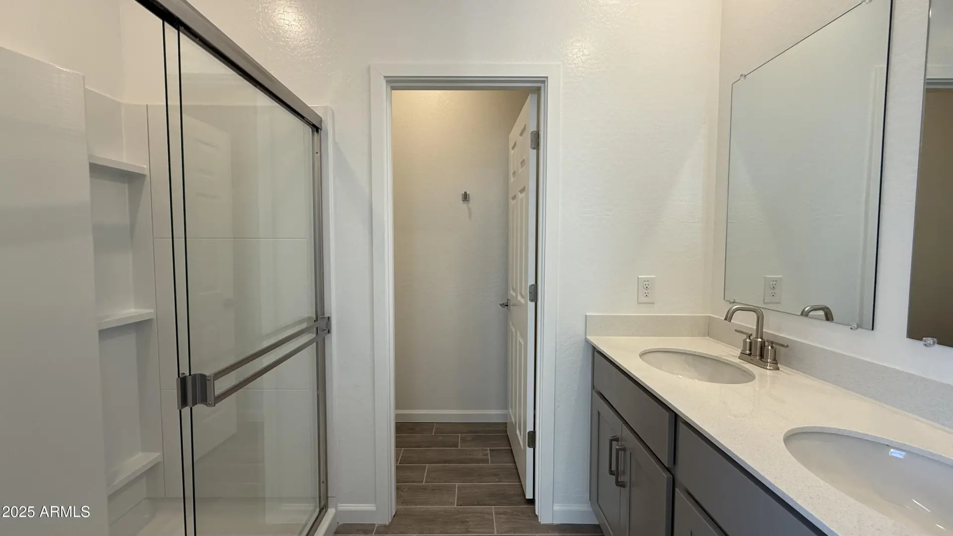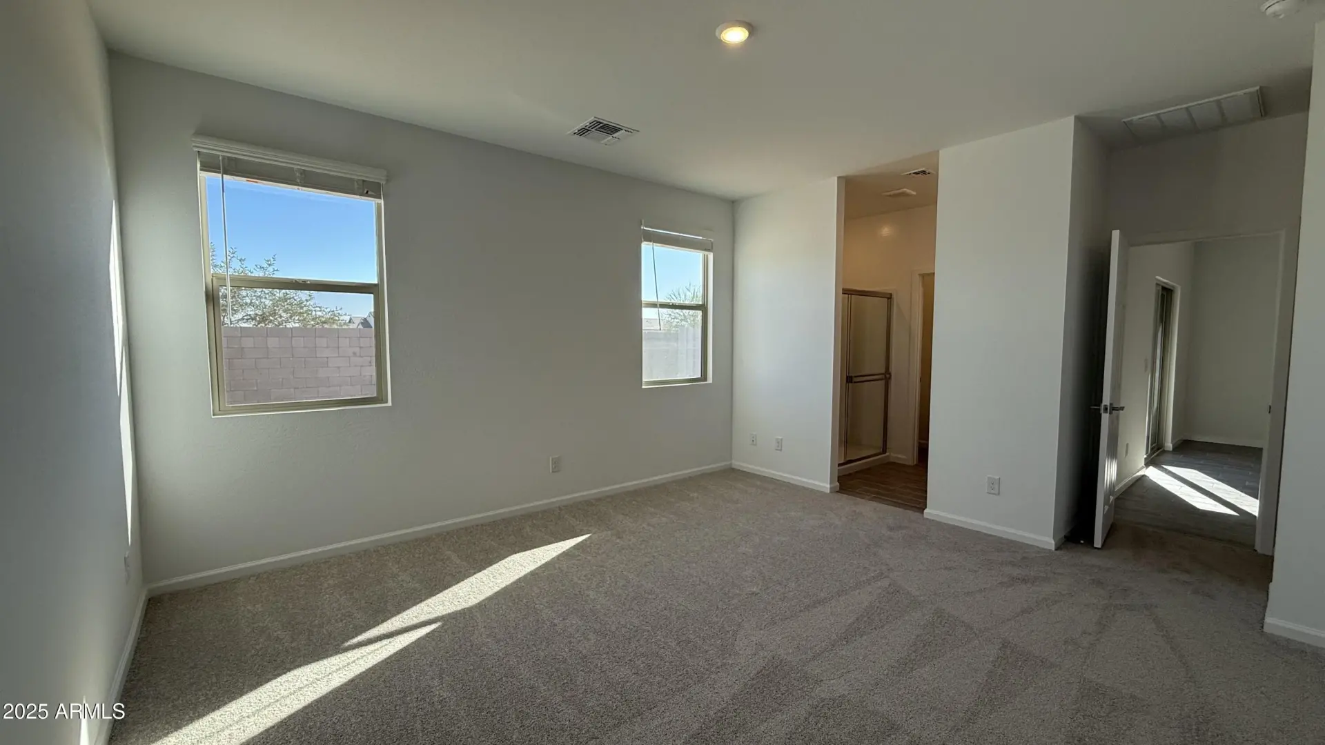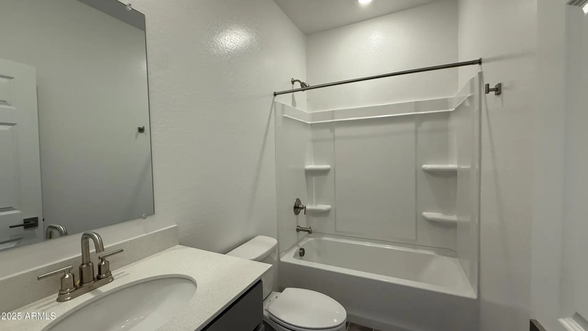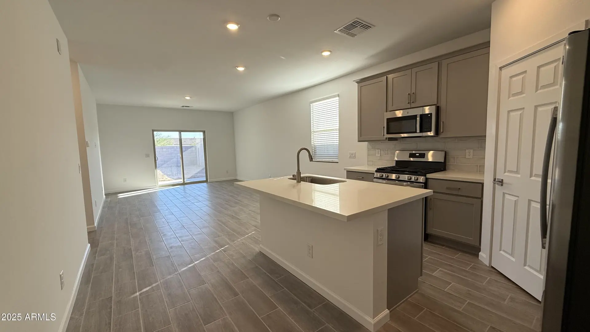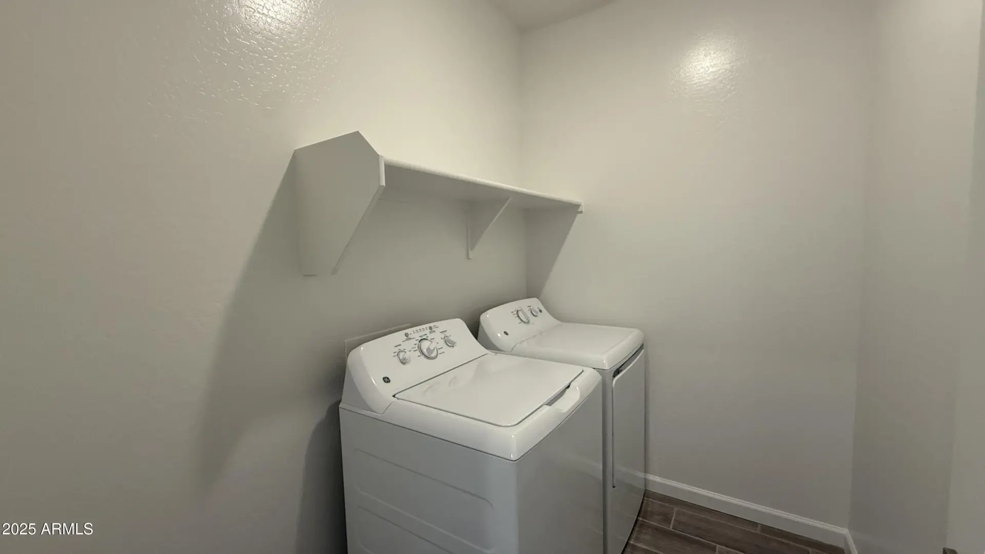 This Jasmine floor plan is a first-time homebuyer's dream offering 1,494 sq ft of living space, 3 bedrooms, a large den, 2 bathrooms, a 2-car garage, and a generous backyard. The kitchen features 42'' gray shaker style cabinets, beautiful White Sand Quartz countertops, an Arnold White 4x16 backsplash, and satin nickel hardware to tie it all together. This Jasmine comes fully equipped with stainless steel appliances, including a gas range, microwave, dishwasher, and refrigerator, plus the appliance suite is completed with a white washer and dryer. The designer-curated finishes are completed with Lakewood Vista 7''x 22'' wood-look tile floors in the main living areas and plush carpeting in the bedrooms and den. Getting ready is easy in the primary suite, which features