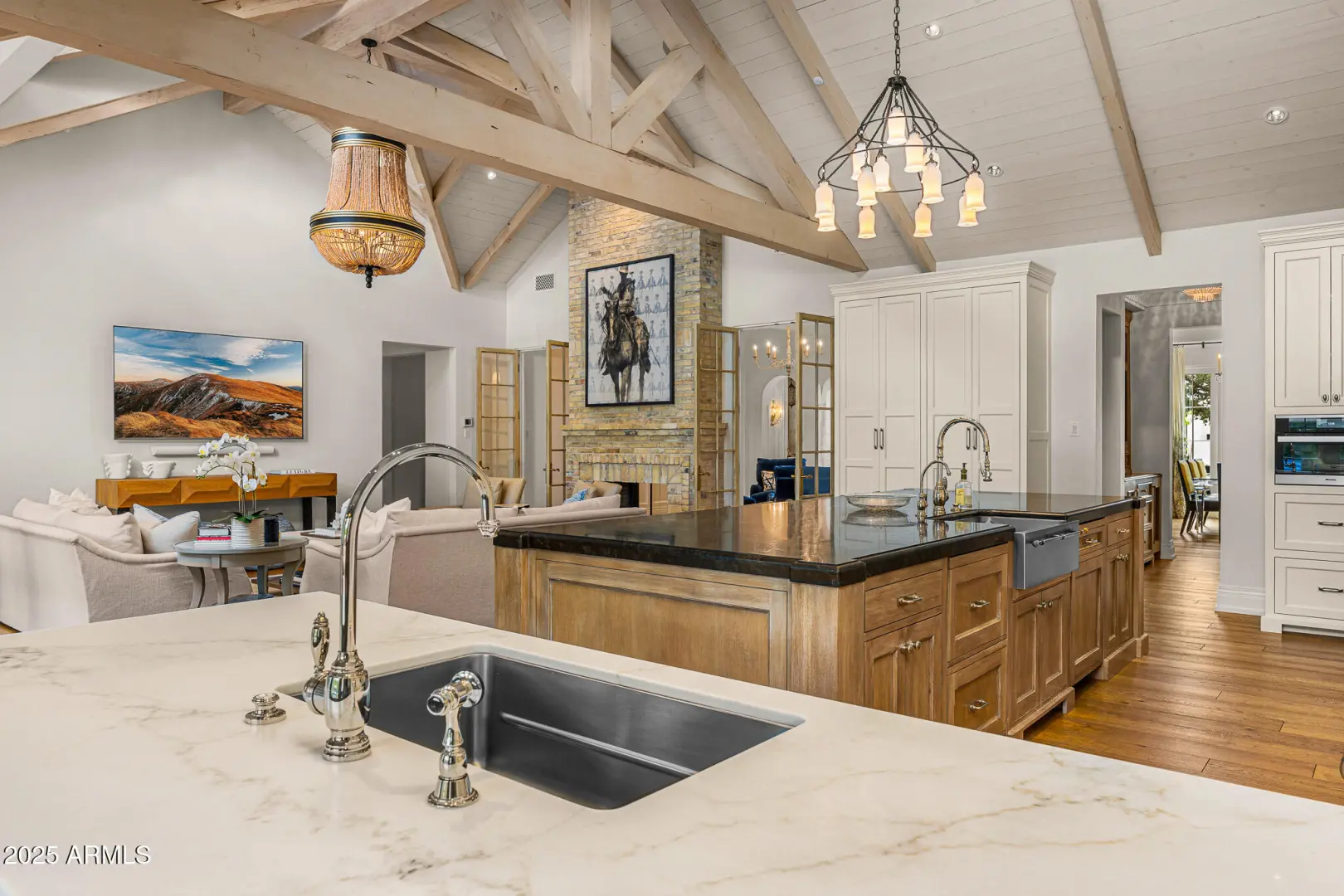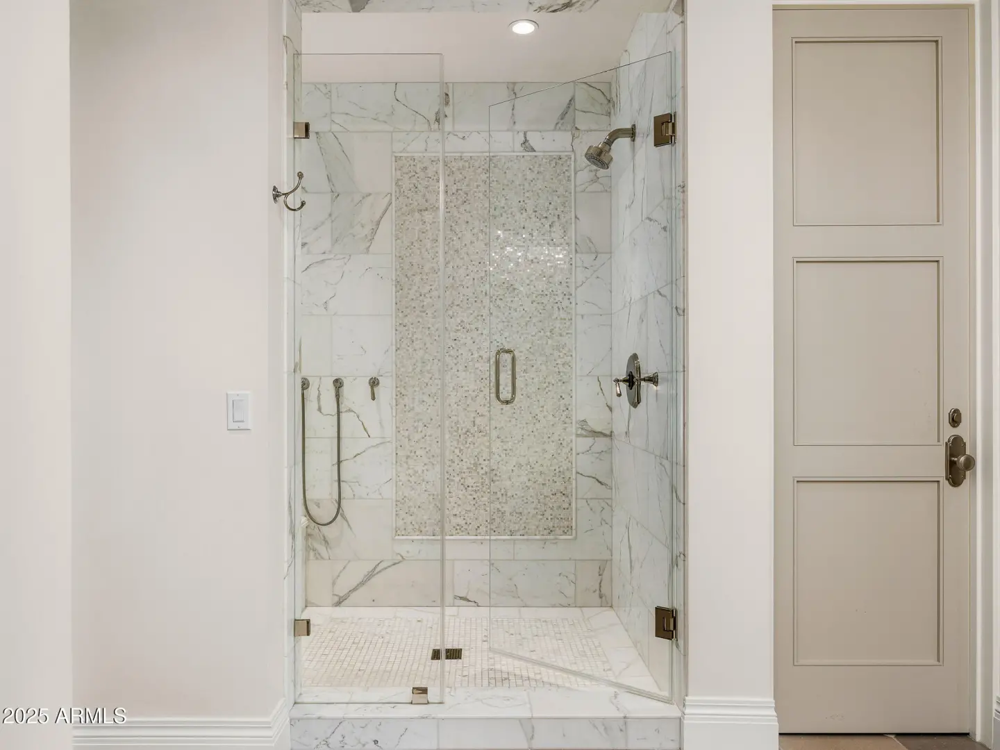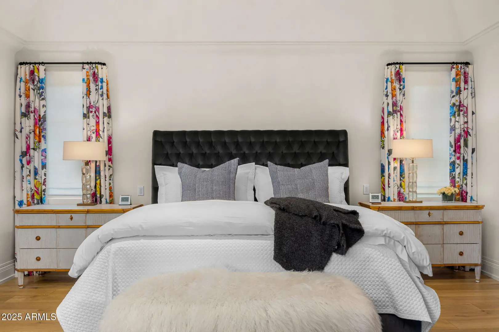 Nestled behind the prestigious gates of Casa Blanca Estates, one of Paradise Valley's most sought-after enclaves, this residence blends timeless French-inspired architecture with modern sophistication, built by Nance Construction and Vallone Interiors. From the moment you arrive, a winding stone path, classic shaker roofline, and refined façade evoke the charm of a private European retreat set against the stunning Arizona landscape. Inside, vaulted ceilings, arched doorways, and intricate custom millwork define the home's graceful character. A dual-sided limestone fireplace elegantly connects the formal living and family rooms, adding warmth and ambiance throughout. The primary suite is a private sanctuary, featuring its own romantic fireplace, expansive sleeping quarters....