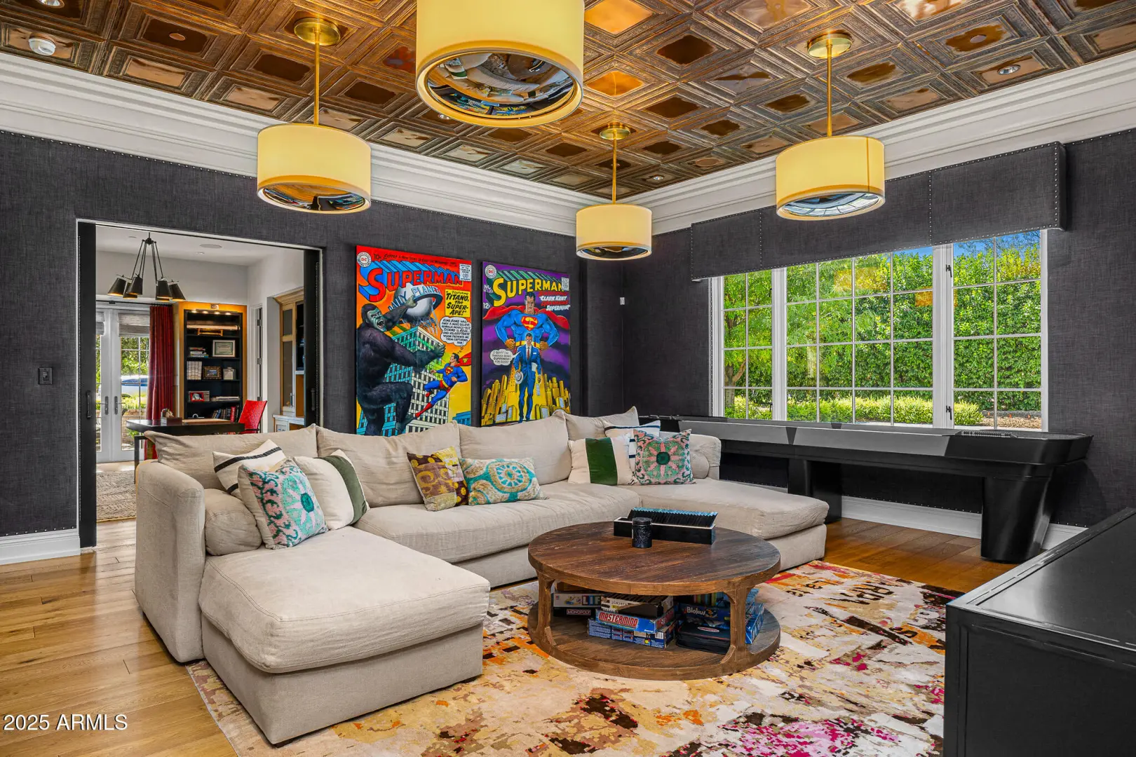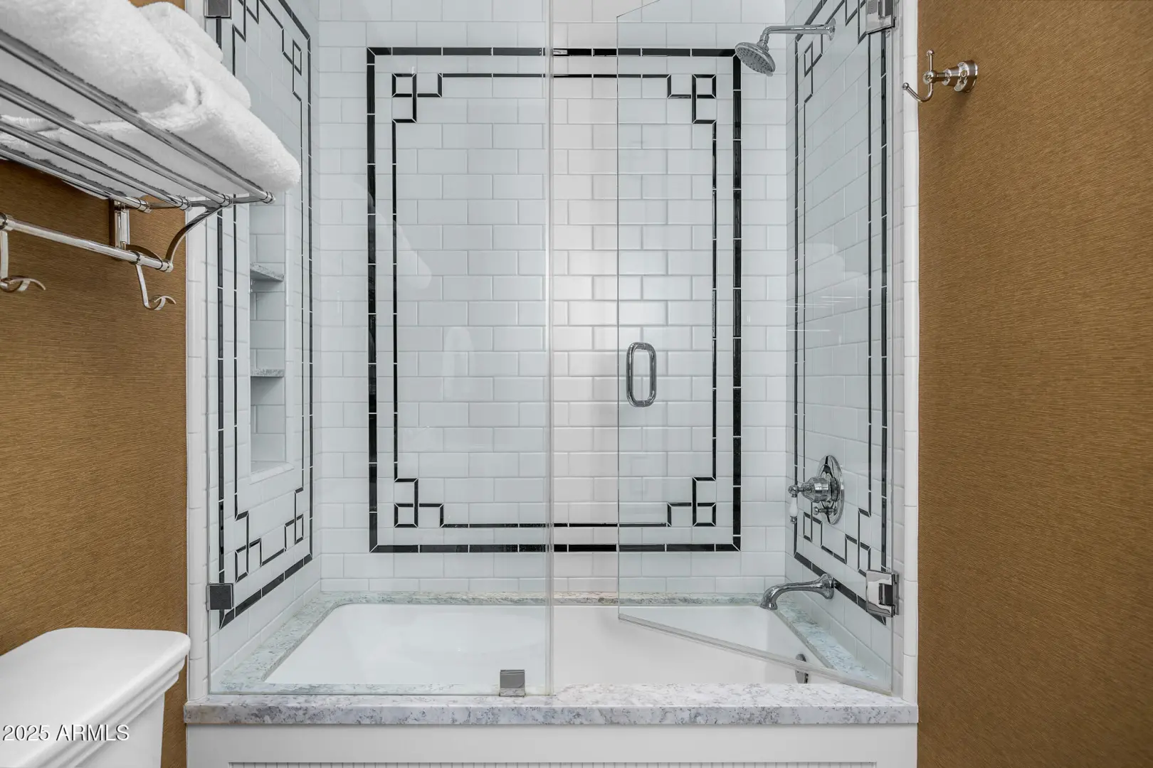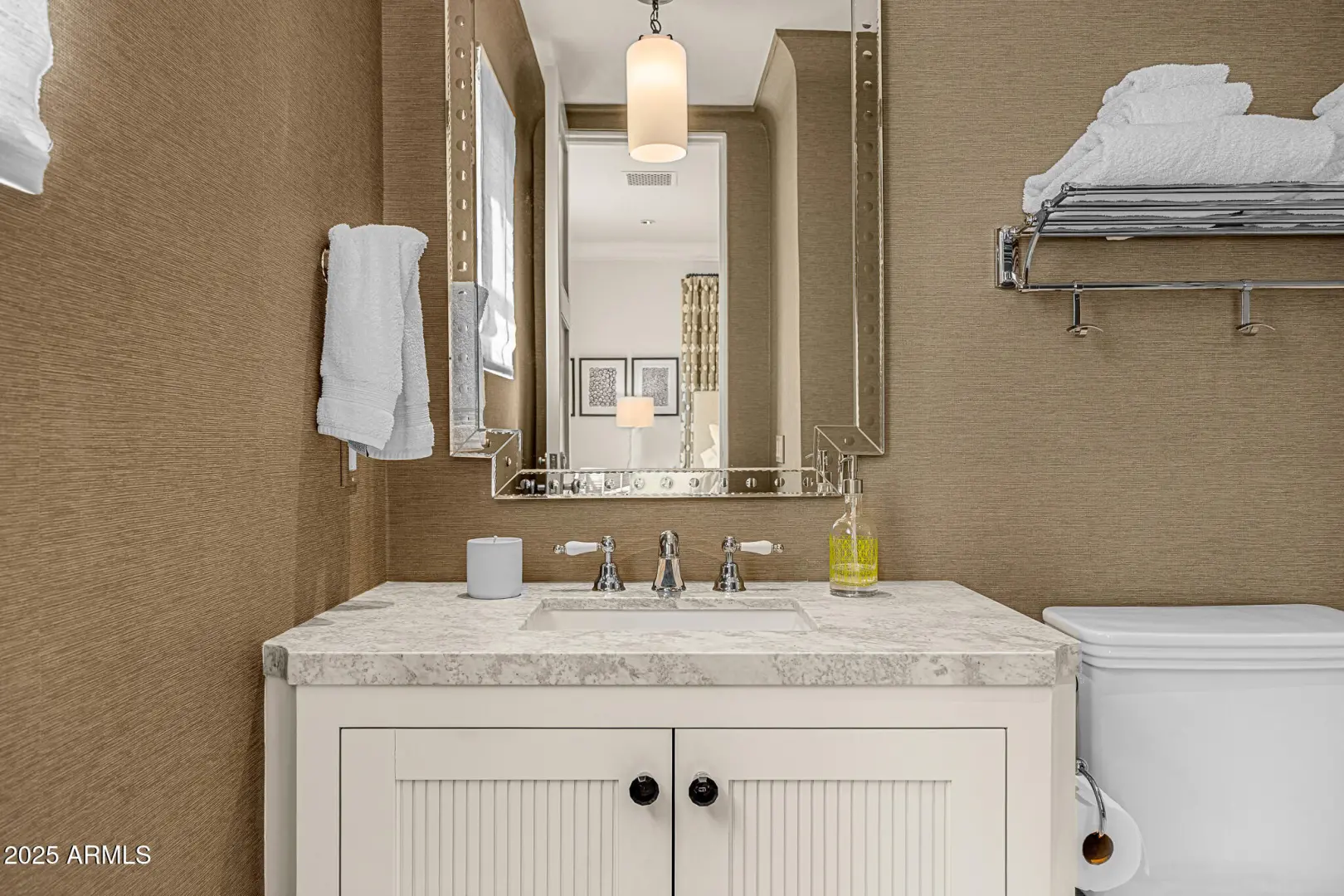 Nestled behind the prestigious gates of Casa Blanca Estates, one of Paradise Valley's most sought-after enclaves, this residence blends timeless French-inspired architecture with modern sophistication, built by Nance Construction and Vallone Interiors. From the moment you arrive, a winding stone path, classic shaker roofline, and refined façade evoke the charm of a private European retreat set against the stunning Arizona landscape. Inside, vaulted ceilings, arched doorways, and intricate custom millwork define the home's graceful character. A dual-sided limestone fireplace elegantly connects the formal living and family rooms, adding warmth and ambiance throughout. The primary suite is a private sanctuary, featuring its own romantic fireplace, expansive sleeping quarters....