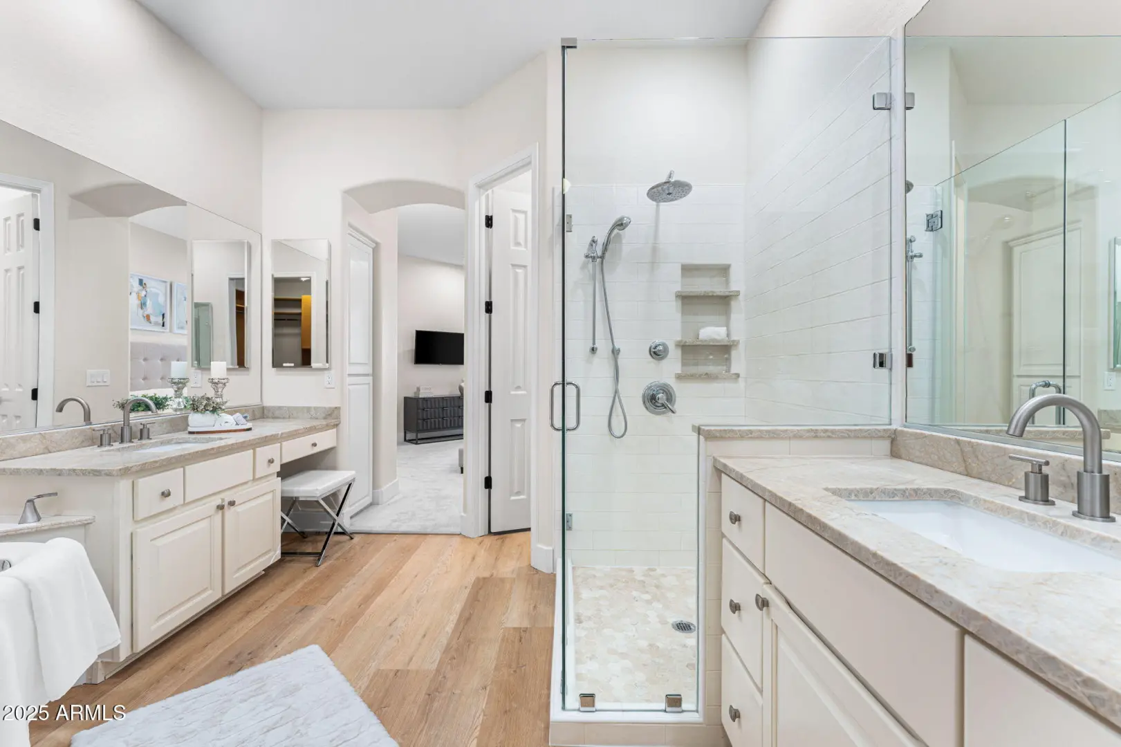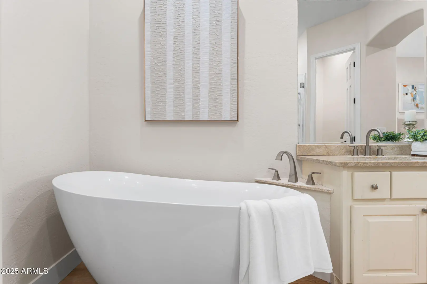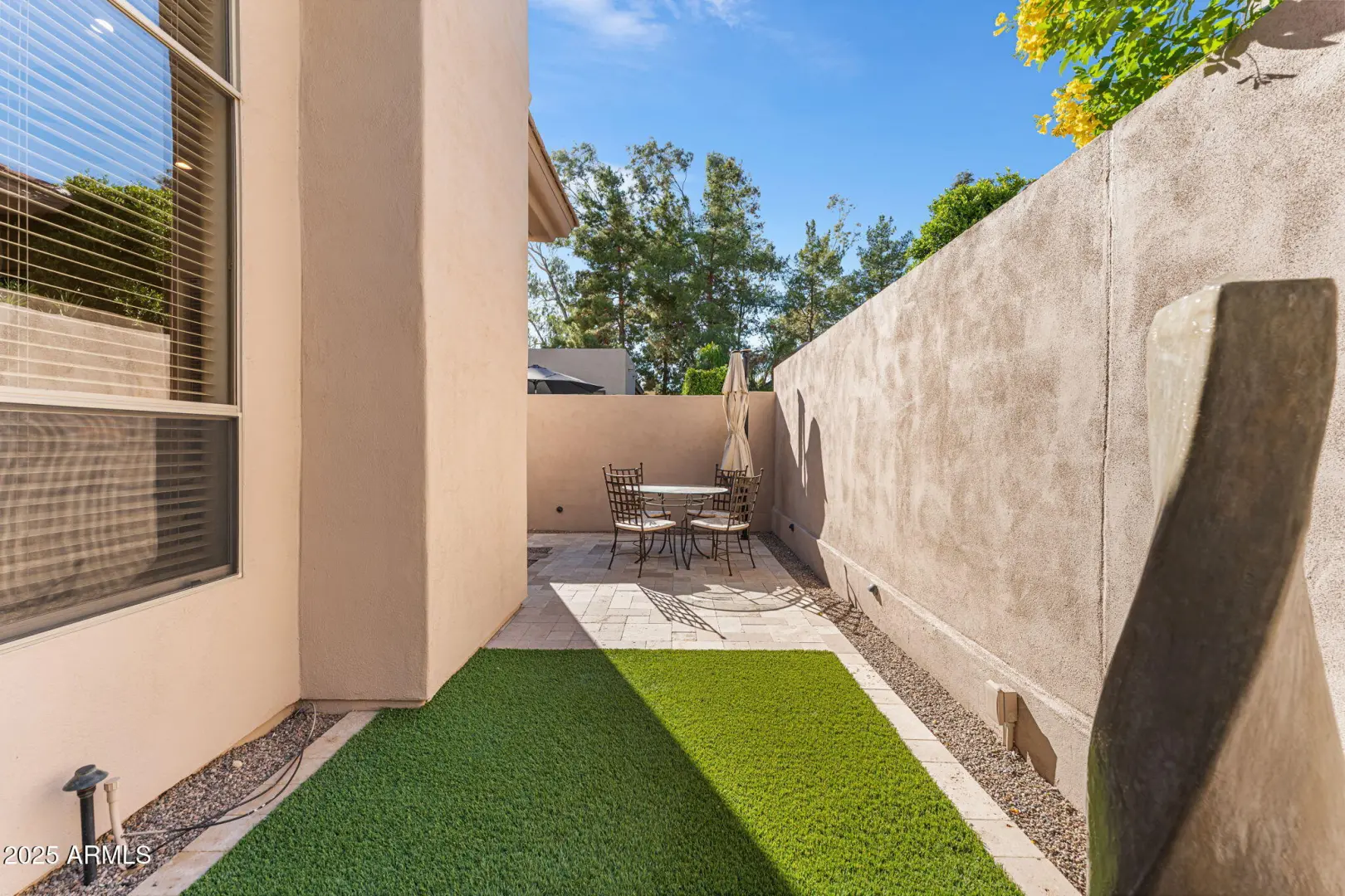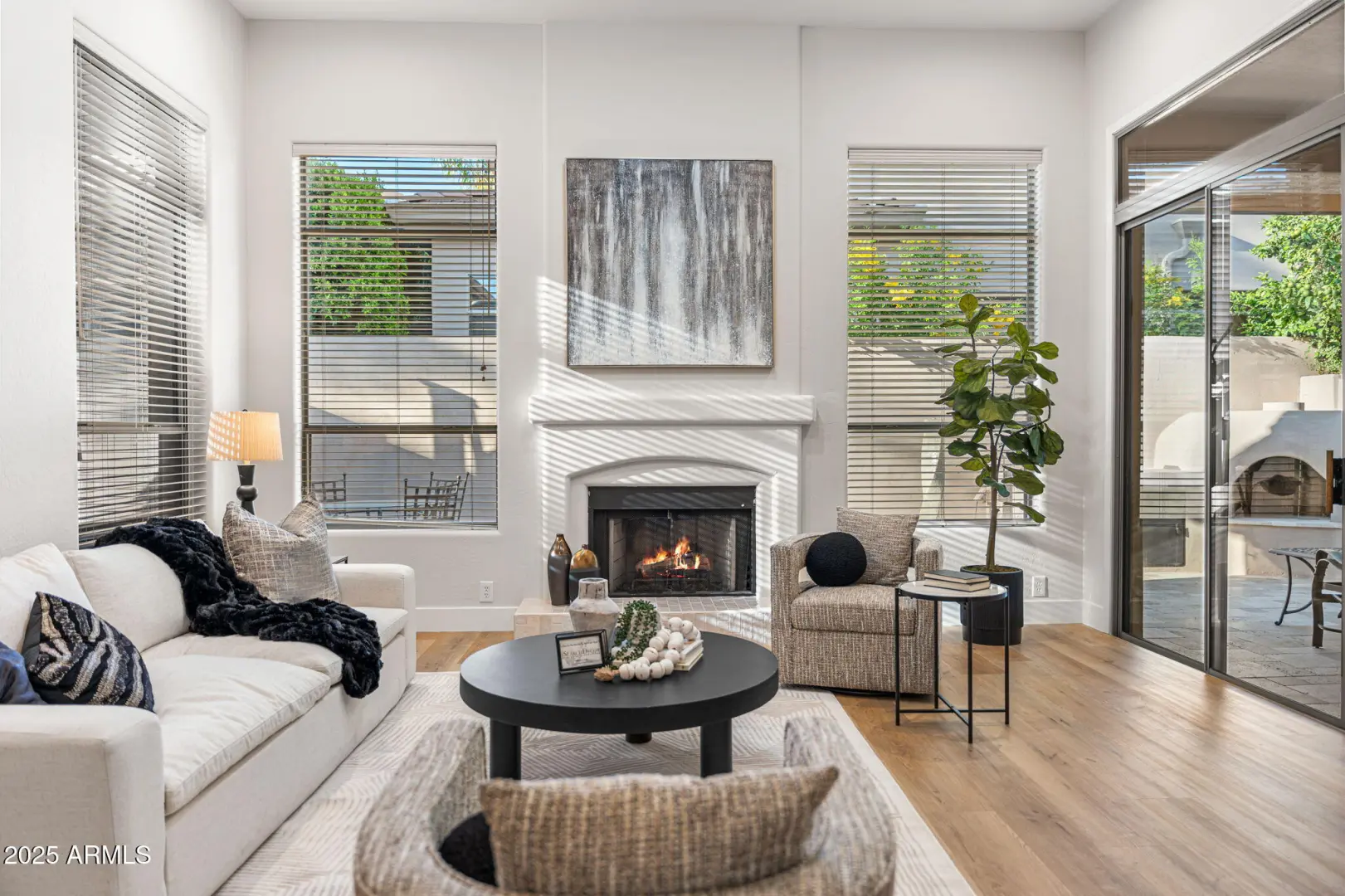 Perfect lock & leave residence in Scottsdale! Recently refreshed, this turnkey home in the gated Gainey Village Casitas offers a desirable floor plan with a main-level owner's suite and updated bath, plus two additional bedrooms, full bath and loft upstairs. Updated luxury flooring with new 5'' modern baseboards, fresh interior paint, updated hardware and zellige tile accents in the kitchen and fireplace create a modern yet timeless feel. The eat-in kitchen includes a built-in wine cooler, high-end stainless appliances while the backyard oasis features a water feature, fireplace, awning, and built-in grill. Whole home water softener and abundant storage add peace of mind. Perfect for lock-and-leave living, all just steps from the Shops at Gainey and the Village Health Club & Spa.